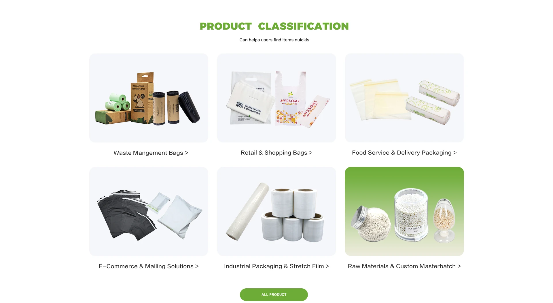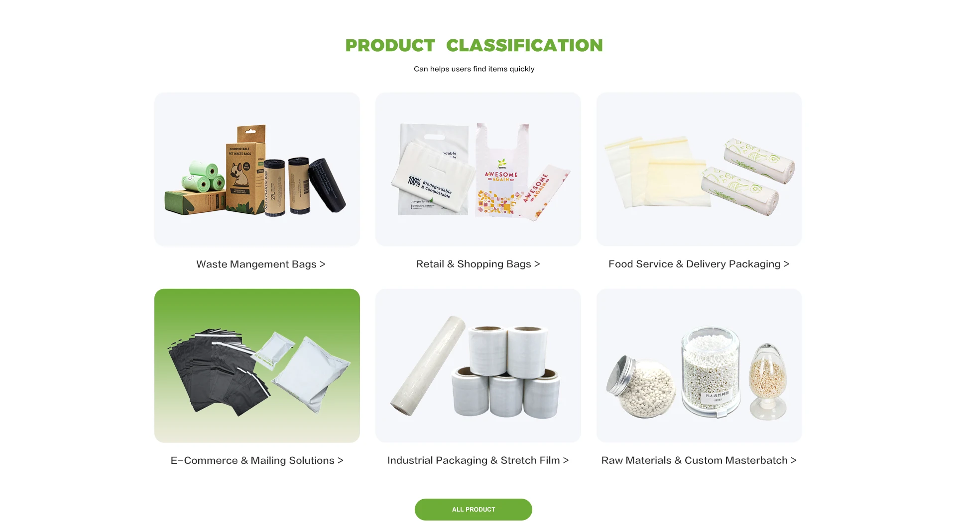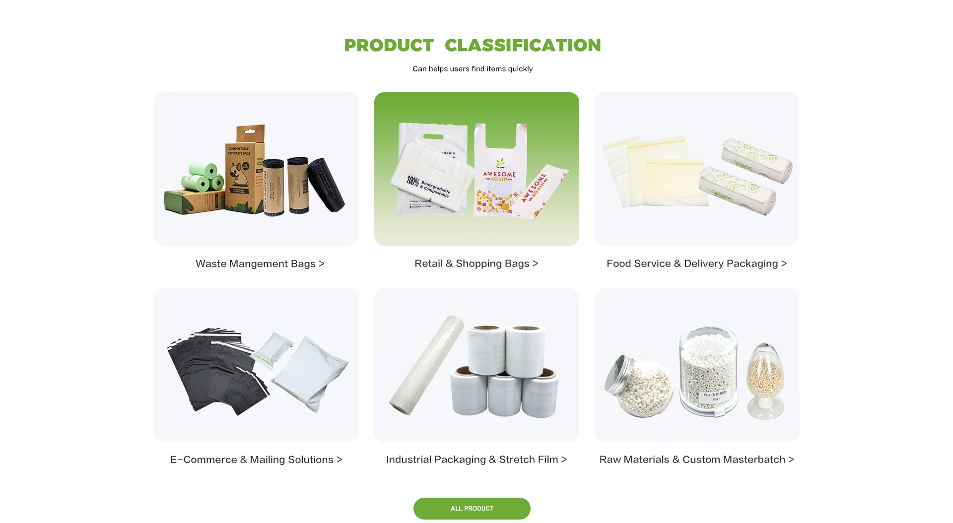 Ana ürünler:Compostable çanta, biyo malzeme, kompostlanabilir biyobozunur ürünler, biyobozunur çöp alışveriş çantası