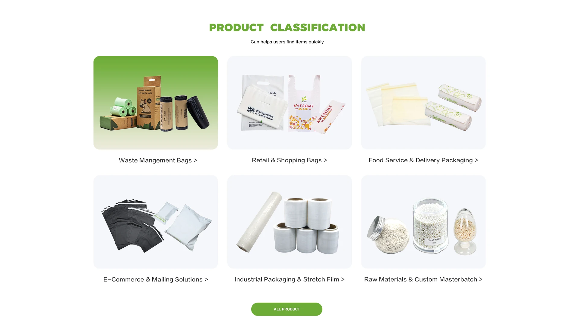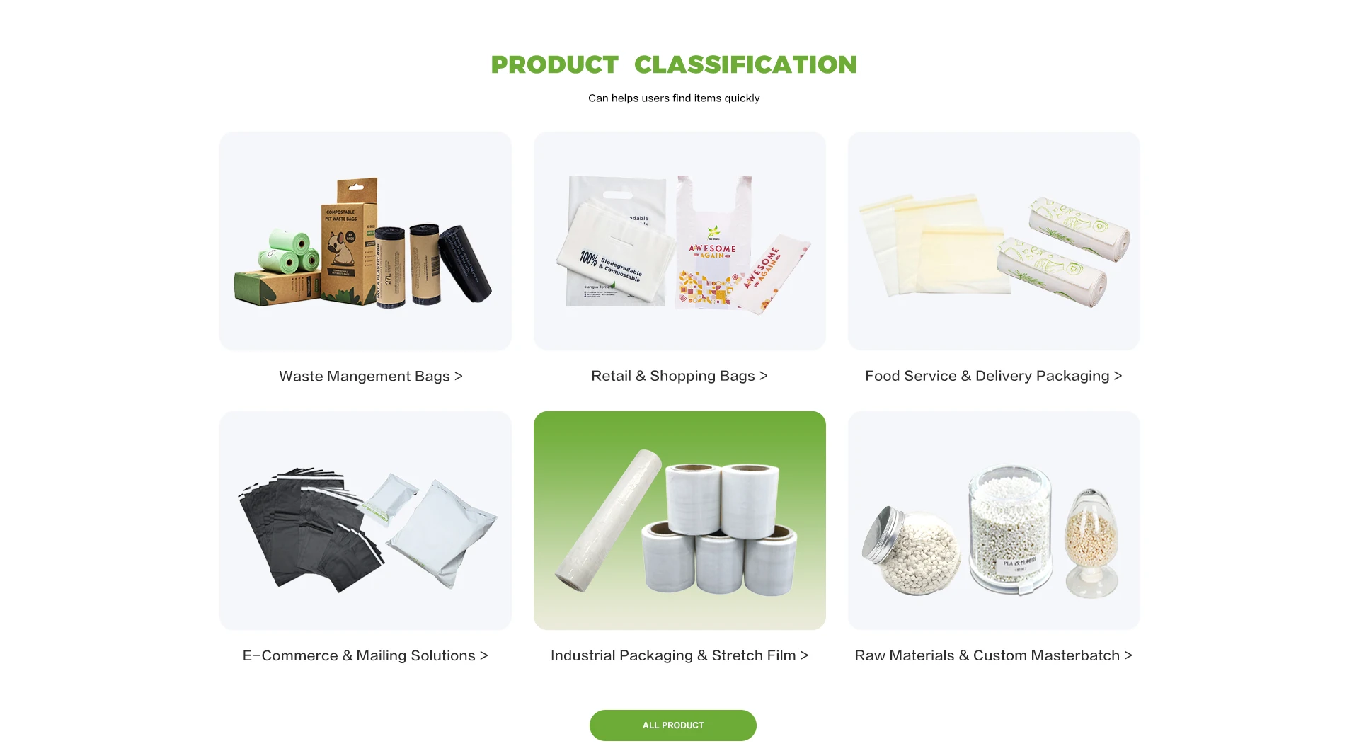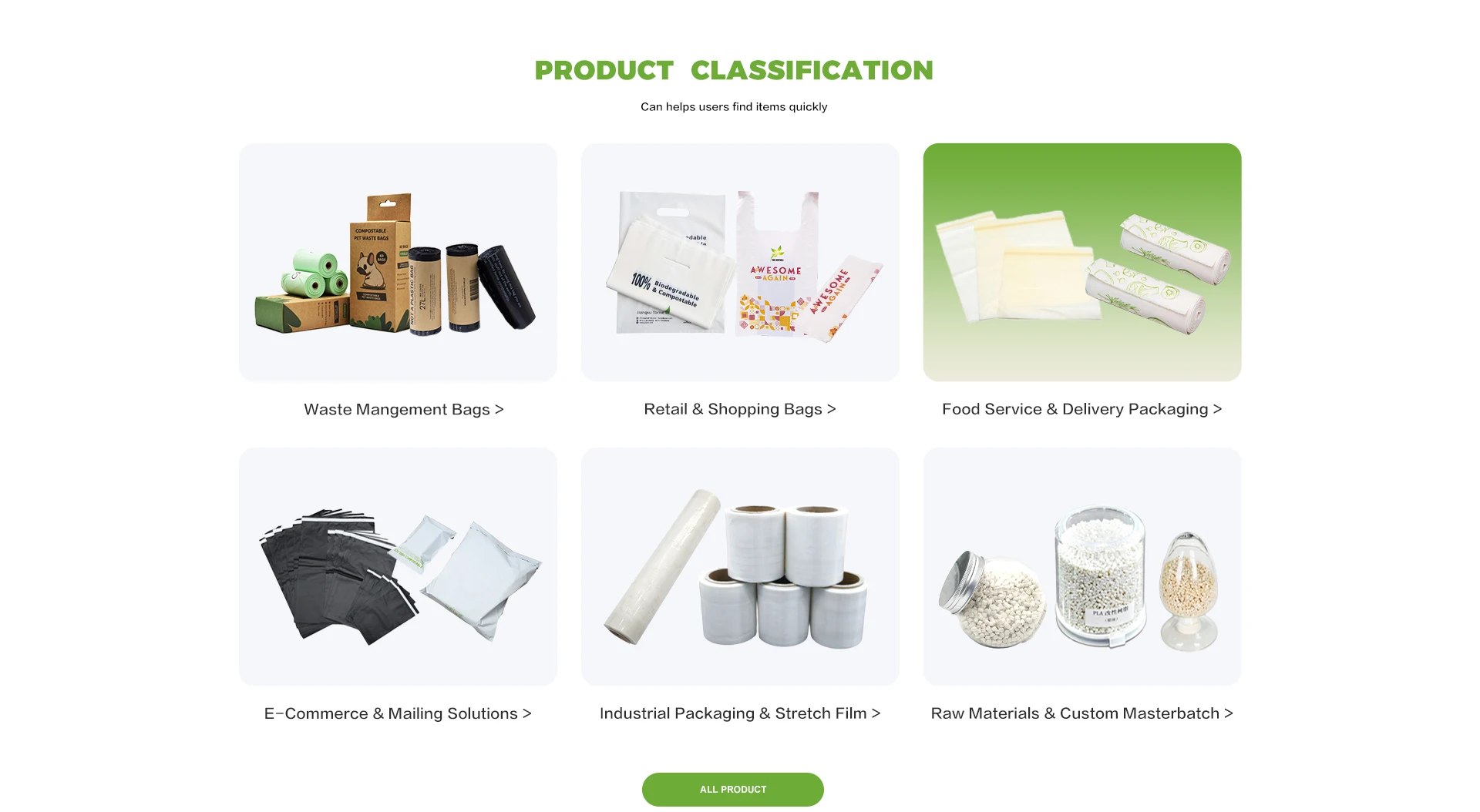 Ana ürünler:Compostable çanta, biyo malzeme, kompostlanabilir biyobozunur ürünler, biyobozunur çöp alışveriş çantası